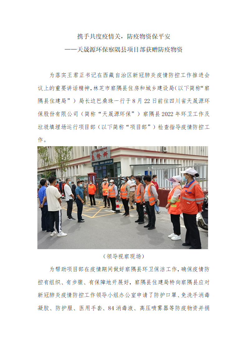 攜手共度疫情關(guān),防疫物資保平安 ——天晟源環(huán)保察隅縣項(xiàng)目部獲贈(zèng)防疫物資