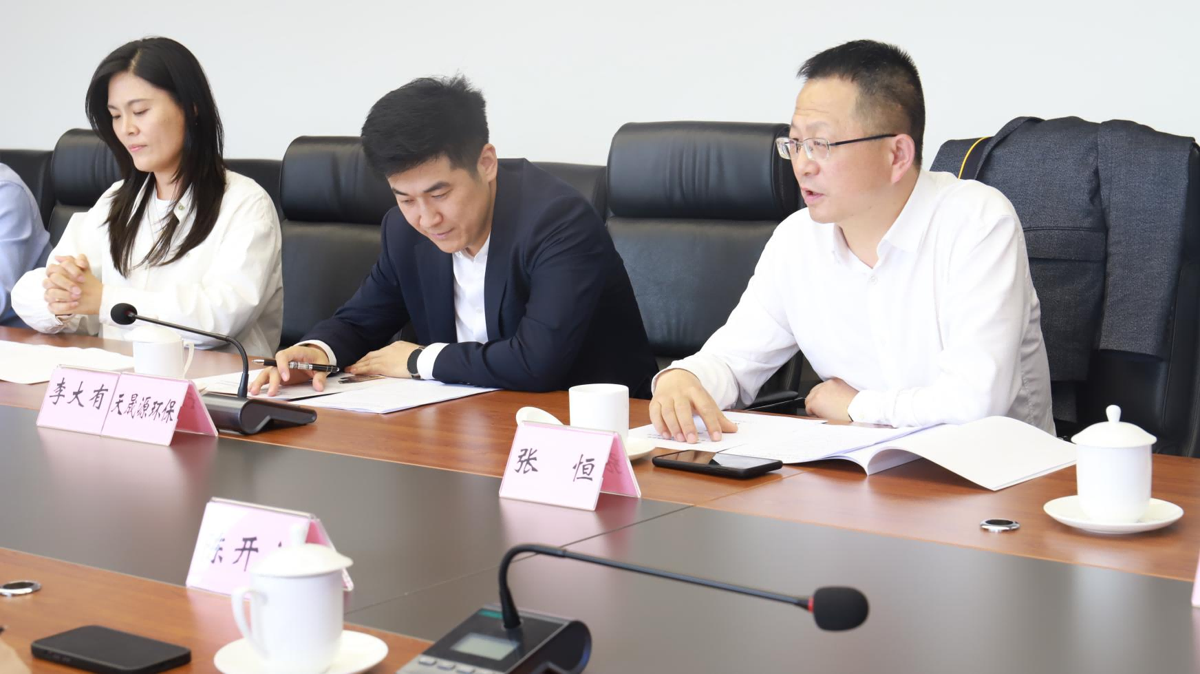 2024年4月23日,成都東部新區綜合執法局與四川省天晟源環保股份有限公司(簡稱天晟源環保)在東部新區舉行合作框架協議簽訂儀式,成都東部新區綜合執法局副局長楊濤、生態環境處負責人韓周承,天晟源環保黨支部書記、董事長李大有,黨支部副書記、總經理張恒,副總經理李美玲等出席儀式。