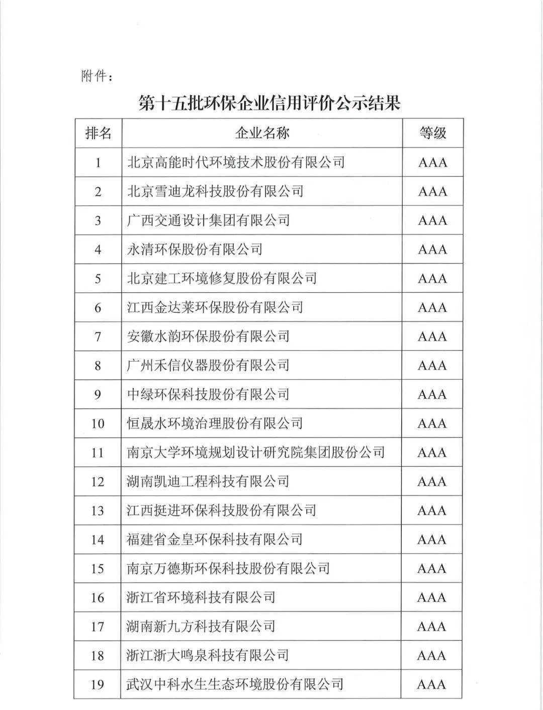 天晟源環(huán)保再獲環(huán)保企業(yè)信用評價AAA級榮譽