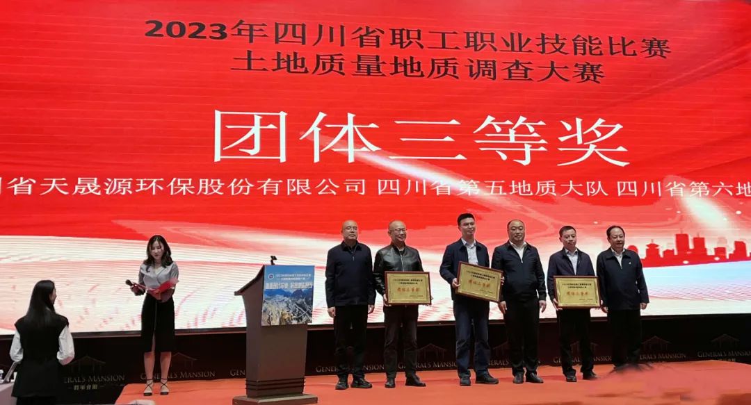11月6日,由四川省總工會、四川省地質局聯合主辦的“2023年四川省職工職業技能比賽土地質量地質調查大賽”在西昌市圓滿收官,四川省天晟源環保股份有限公司(簡稱“天晟源環保”)作為四川省第一地質大隊(簡稱“一大隊”)選派的隊伍之一榮獲團體三等獎,2名參賽選手躋身個人排名前五,榮獲個人三等獎。