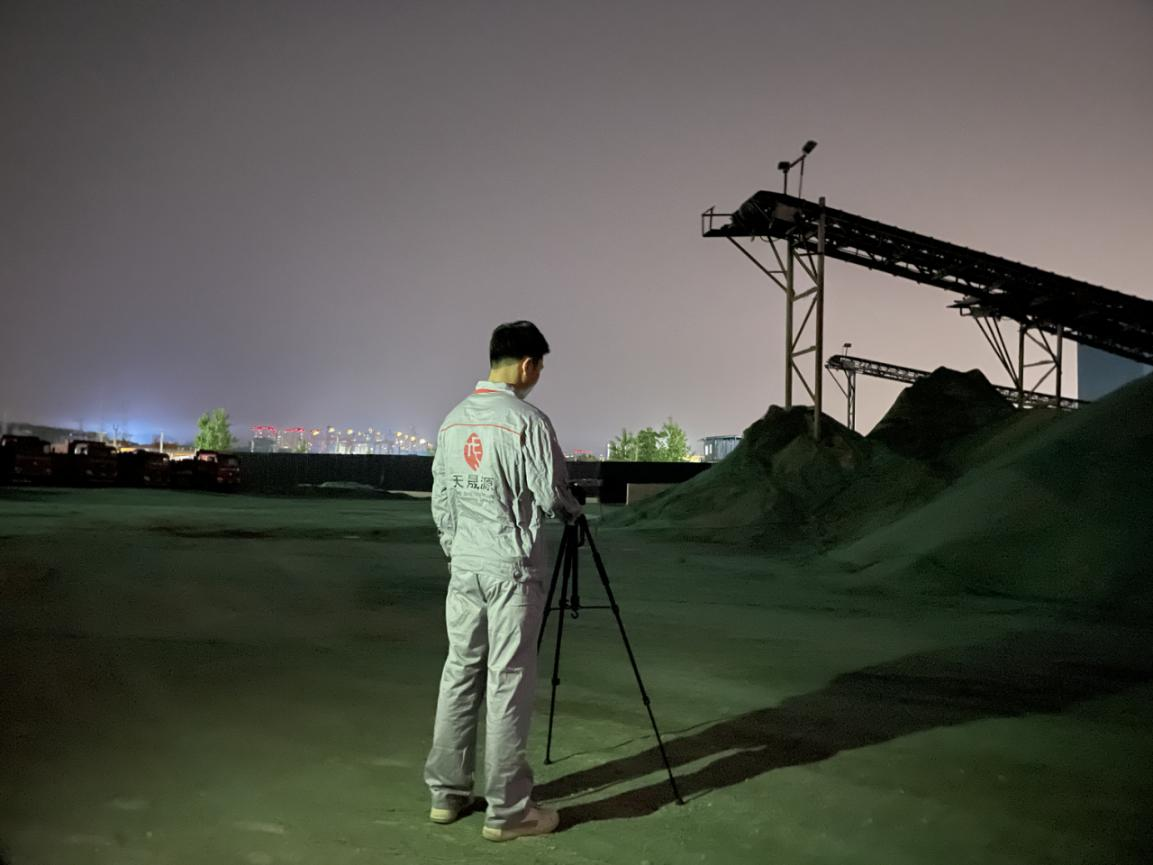 (上圖:5月1日傍晚,監測人員正在進行噪聲監測工作)