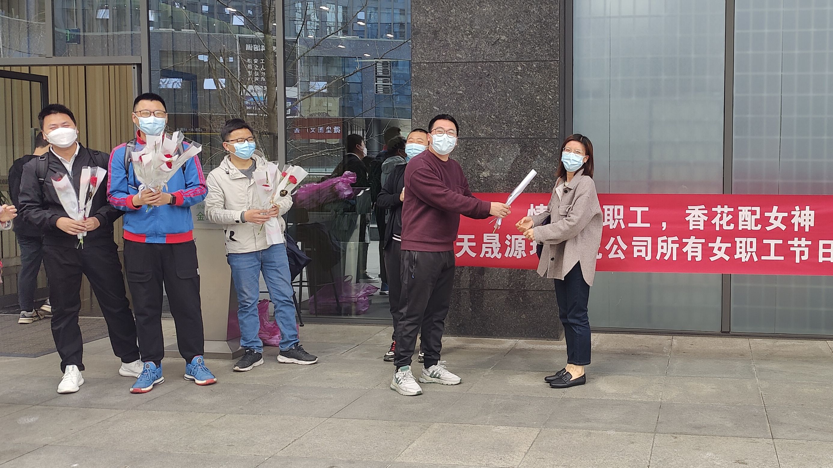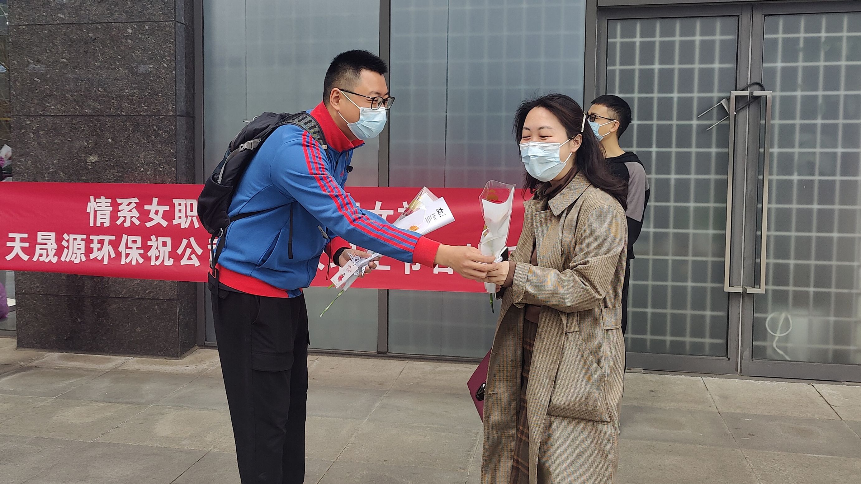 天晟源環保工會主席姚夢表示,天晟源環保有近三分之一的女職工,公司能有如今蓬勃的發展,離不開她們在這里揮灑青春、綻放芳華。環境工程中心工會主席魏莉希望通過一束鮮花、一聲祝福為她們開啟美好的一天,愉悅地度過這個獨屬于她們的節日。在這里,天晟源環保及工會再次對女職工們的辛勤付出表示由衷的感謝,祝愿她們以及全國廣大女同胞節日快樂!