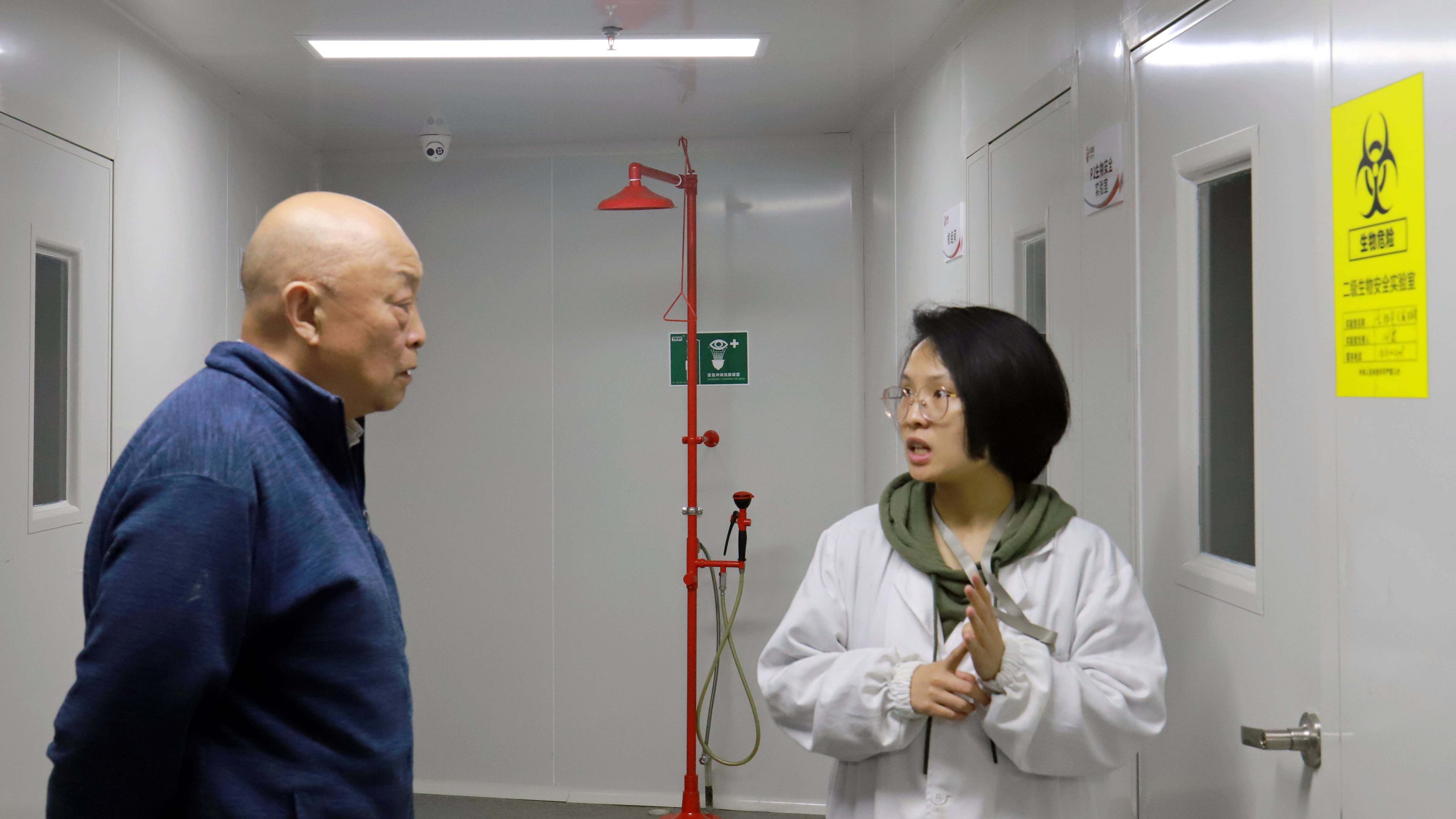 (邵志軍參觀生產中的實驗室)