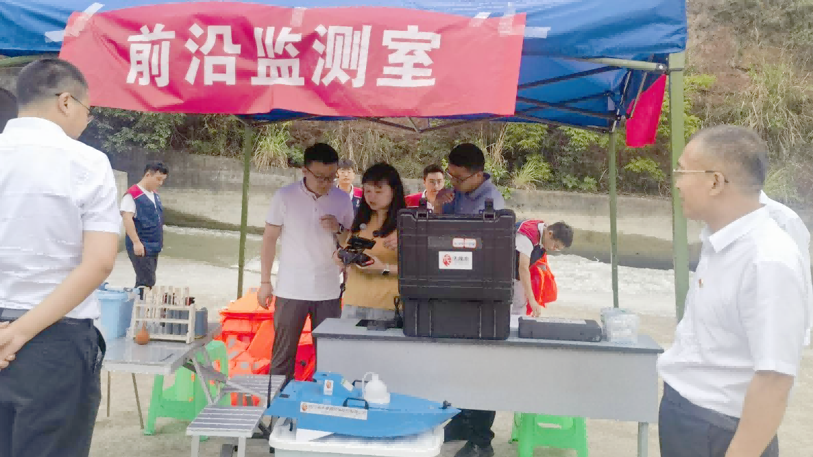 演練結束后,楊濤副局長等相關領導參觀了現場前沿監測室,詳細了解了天晟源環保自主研發的無人采樣船等設備,高度贊揚了天晟源環保在此次應急演練中的組織、策劃水平和現場專業技術人員的技術水平。