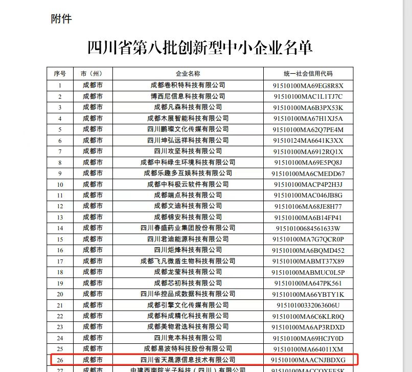 近日,經(jīng)四川省科學技術(shù)廳、四川省經(jīng)濟和信息化廳審核認證,天晟源環(huán)保全資子公司四川省天晟源信息技術(shù)有限公司(以下簡稱“天晟源信息”)憑借扎實的核心業(yè)務、強勁的創(chuàng)新技術(shù)和研發(fā)能力成功榮獲四川省“科技型中小企業(yè)”“創(chuàng)新型中小企業(yè)”雙重認定。
